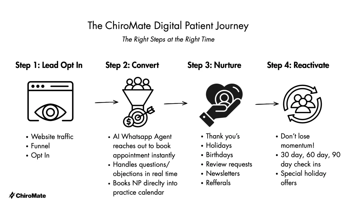 From owner-operated clinics to multi-location practices, ChiroMate plugs in as your growth team without the overhead.